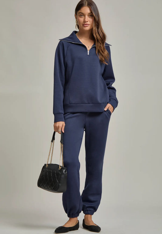 Quarter Zip Pullover + Jogger Modal Travel Set | Navy