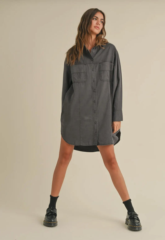 Washed Button Down Shirt Dress