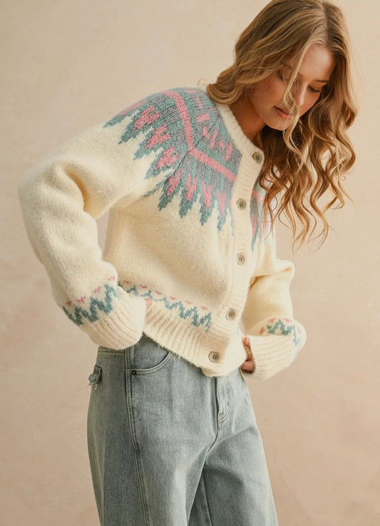 Snowflake Jacquard Knit Cardigan