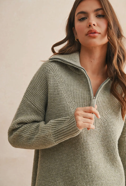 Waffle Knit Quarter Zip Sweater
