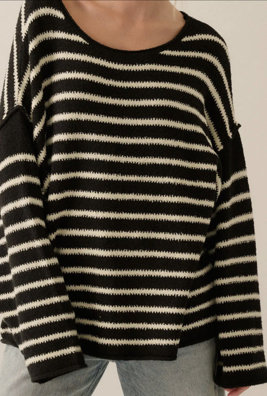 Striped Textured Knit Oversized Sweater
