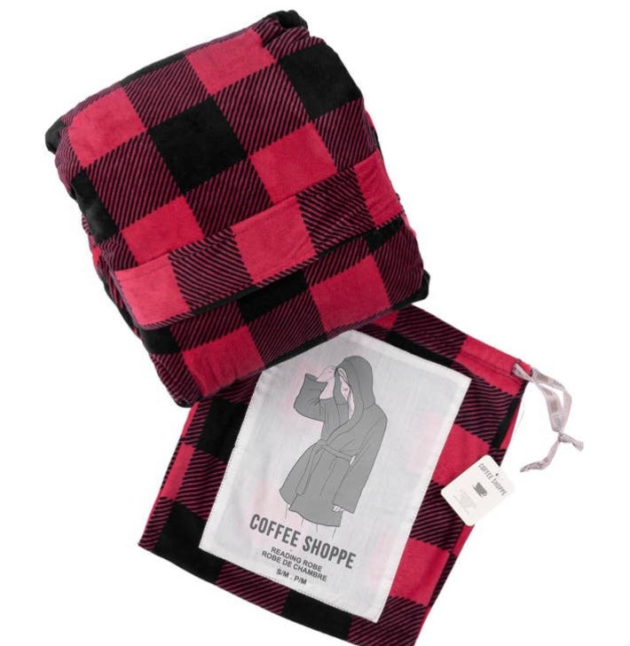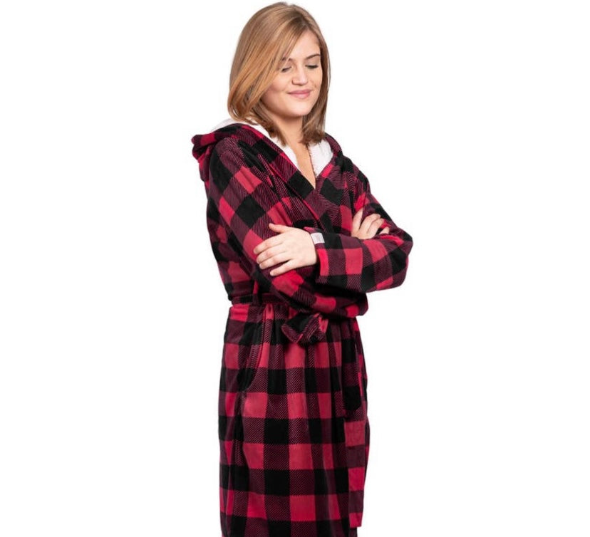 Our plaid robe with 100% poly plush-lined hood is soft, perfectly plush and perfectly suited for wrapping up and relaxing with a good book !