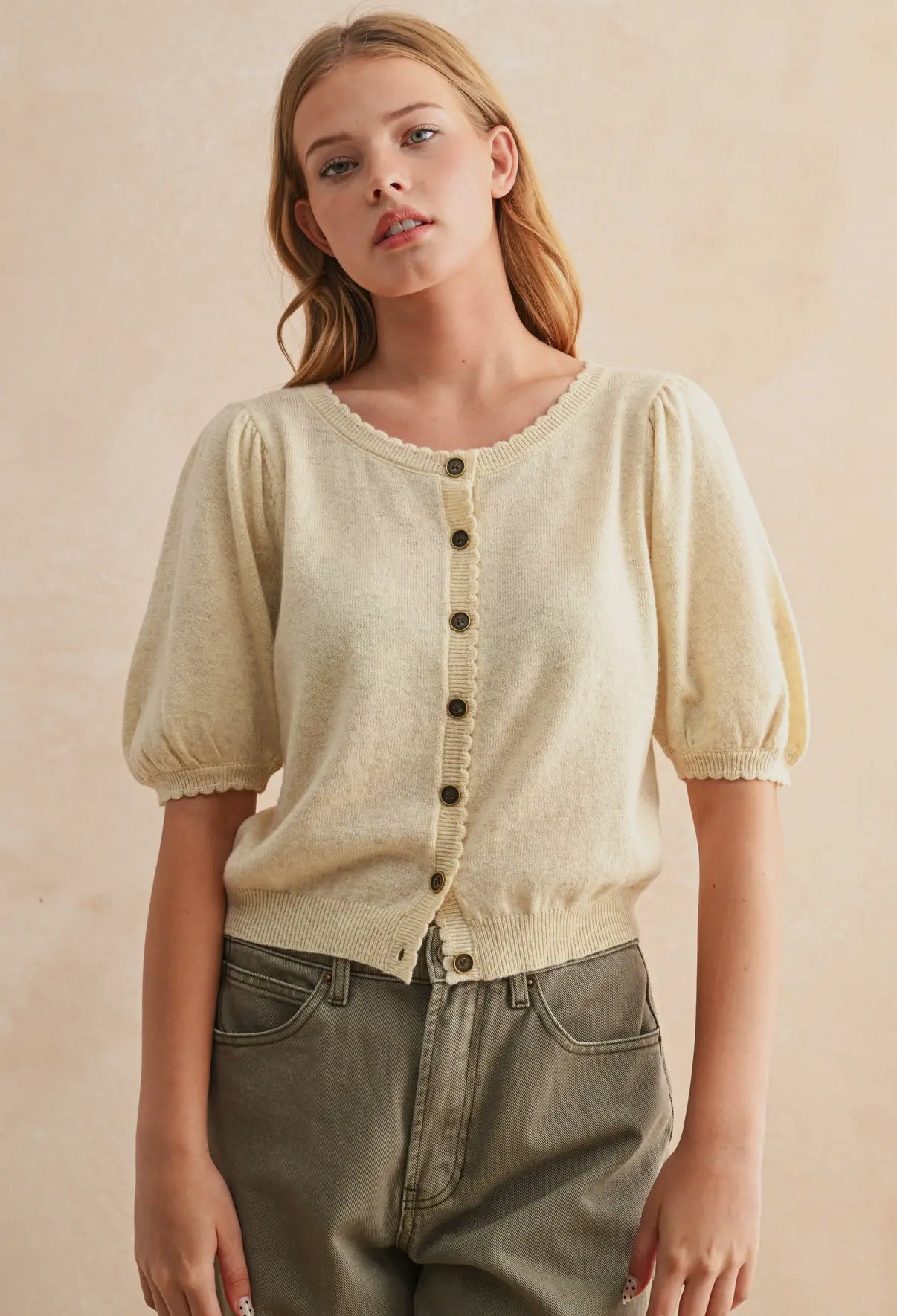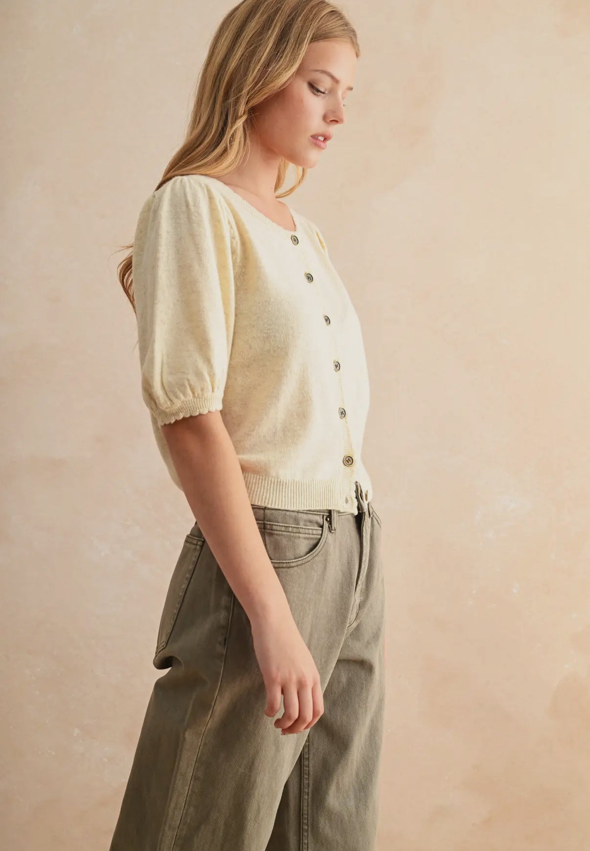 Butter Puff Sleeve Button Down Cardigan