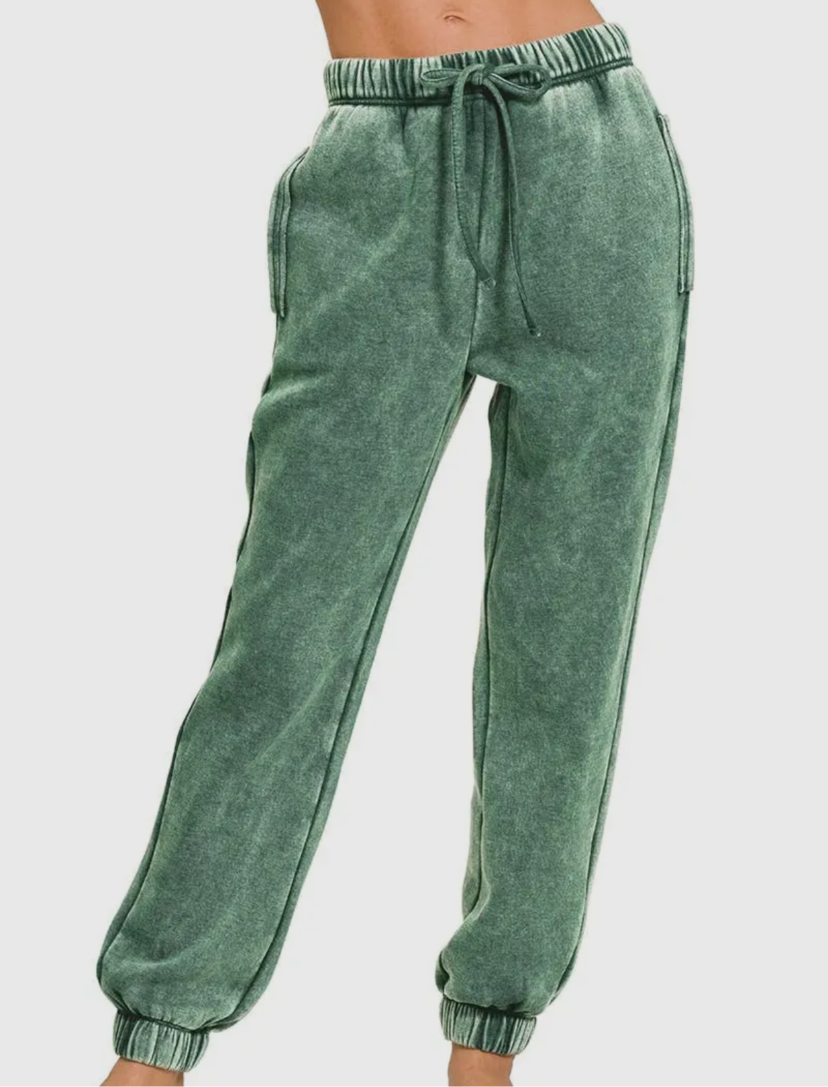 Mossy Green | Acid Wash Fleece Lined Joggers