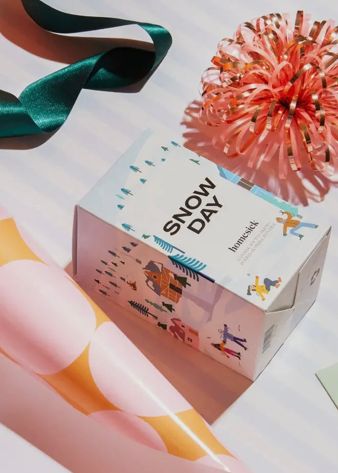 Snowflakes that land on cheeks and melt into smiles. Recall endless hours of snow angels and sledding with notes of winter greens and white musk.