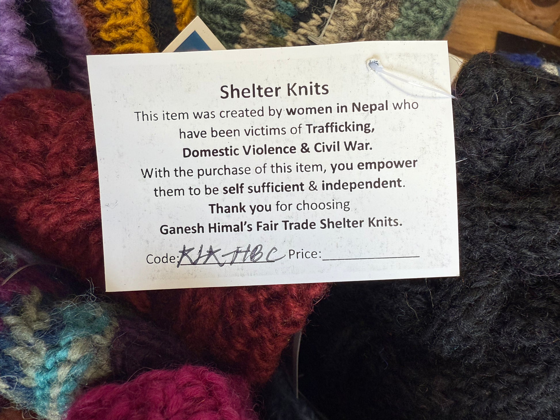 Most of Ganesh Himal's knit items are knit by women in their homes while their children are in school.